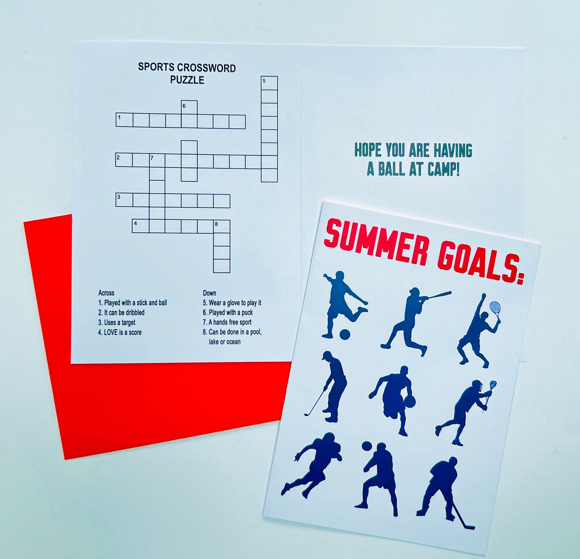 Sporty Camper Pack 1 includes 5 greeting cards with 2 shoe charms: